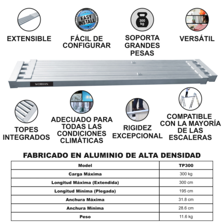 Escalera 5.55m Extensible Aluminio Telescopica Multifuncion con Estabilizador Plegable Tijera LG5.5