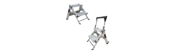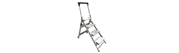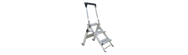 Escalera de mano tijera plegable de aluminio. Producto de grado industrial: carga máxima de 175 kg. Escalones extra anchos antideslizantes.