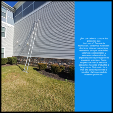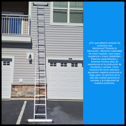 ¿Por qué deberías comprar nuestros productos? Utilizamos materiales de calibre más grueso para mayor resistencia y estabilidad. Nos especializamos y tenemos muchos años de experiencia en la producción de escaleras y rampas. Como empresa de marca alemana, respaldamos nuestros productos a largo plazo. aluminio de calidad garantiza la robustez y longevidad de nuestros productos.