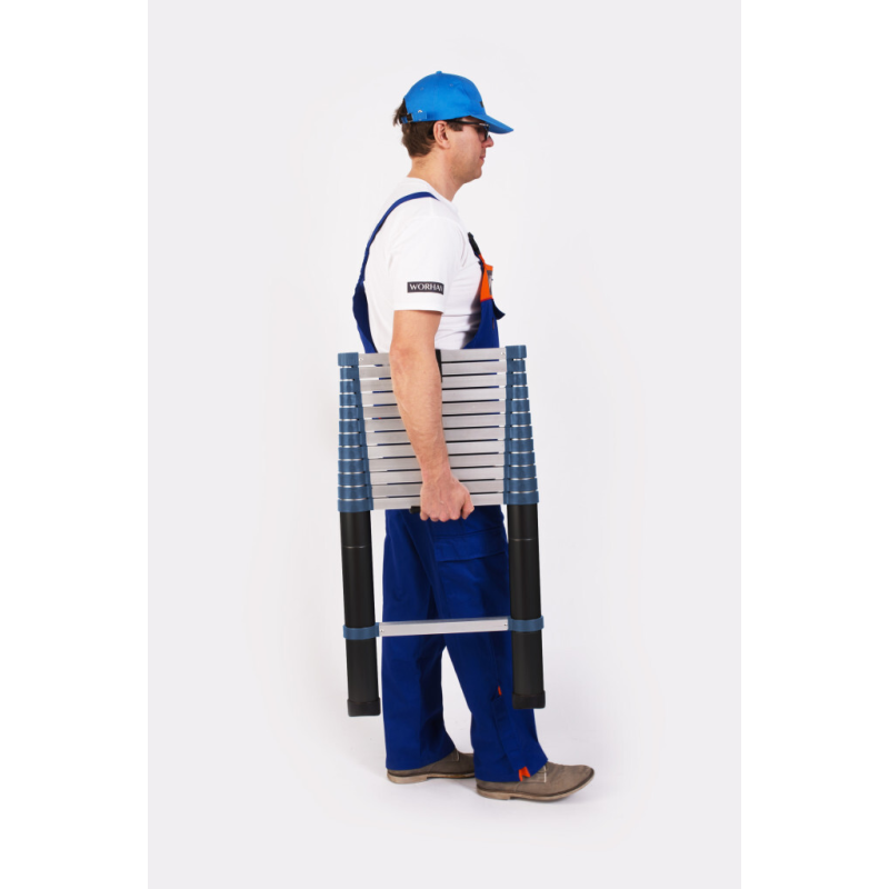 Escalera telescópica simple WORHAN *** Línea C: escaleras telescópicas simples de calidad que cumplen con todos los requisitos de seguridad y son las más adecuadas para uso amateur. *** Línea B: escaleras telescópicas simples que cumplen con todos los requisitos de seguridad., Tiene estabilizadores adicionales que proporcionan una estabilidad mucho mayor durante el uso., *** Línea A: las escaleras telescópicas de la más alta calidad que fabricamos., En la fase de producción, se ha hecho hincapié en la mejora de la seguridad, la durabilidad y la máxima estabilidad, especialmente cuando se trabaja en altura., Lo recomendamos para uso diario a profesionales y aficionados., Dispositivos de seguridad integrados y barra estabilizadora.