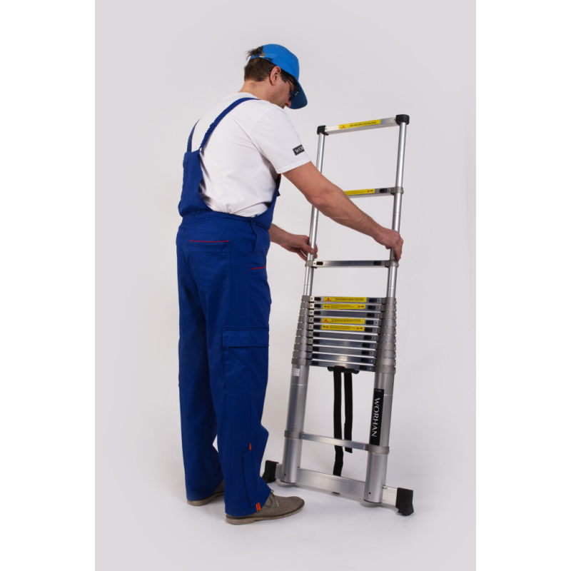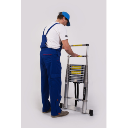 La nueva alternativa a las escaleras convencionales, la escalera telescópica tiene muchas aplicaciones tanto para uso amateur como profesional., Diseño único, la escalera abre y cierra "paso a paso", hasta la altura máxima, por lo que solo se abre hasta la altura necesaria, lo que permite una gran maniobrabilidad, especialmente en espacios reducidos. Plegada, la escalera es extremadamente compacta y fácil de transportar.