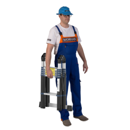 Escalera telescópica doble WORHAN *** Línea C: escaleras telescópicas dobles de calidad que cumplen con todos los requisitos de seguridad y más adecuadas para uso amateur.***** Línea B: escaleras telescópicas dobles de calidad que cumplen con todos los requisitos de seguridad. Debido a que la escalera está equipada con 2 estabilizadores, brinda mejor estabilidad cuando se usa en la posición "A" o completamente extendida. ***** Línea A: estas son las escaleras telescópicas dobles más altas que fabricamos. En la fase de producción, se ha hecho hincapié en la mejora de la seguridad, la durabilidad y la máxima estabilidad, especialmente cuando se trabaja en altura. Recomendamos estas escaleras para uso diario y constante a profesionales y aficionados.