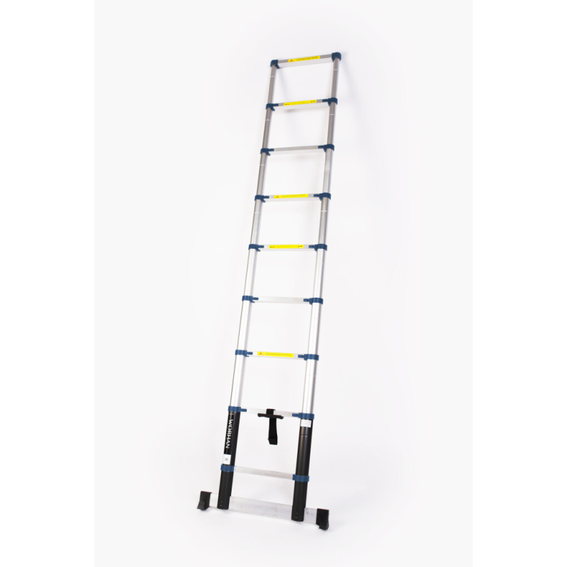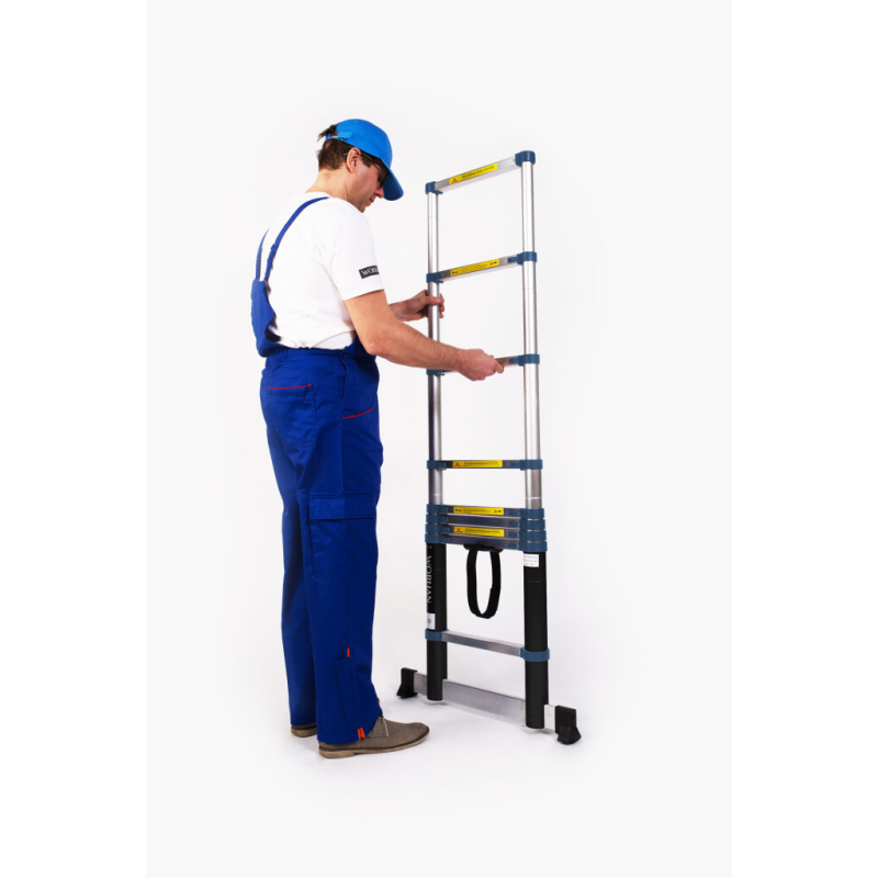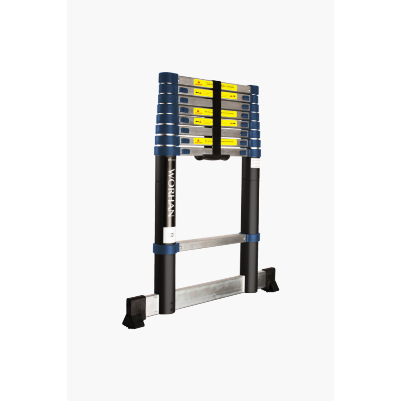 Escalera telescópica simple WORHAN *** Línea C: escaleras telescópicas simples de calidad que cumplen con todos los requisitos de seguridad y son las más adecuadas para uso amateur. *** Línea B: escaleras telescópicas simples que cumplen con todos los requisitos de seguridad., Tiene estabilizadores adicionales que proporcionan una estabilidad mucho mayor durante el uso., *** Línea A: las escaleras telescópicas de la más alta calidad que fabricamos., En la fase de producción, se ha hecho hincapié en la mejora de la seguridad, la durabilidad y la máxima estabilidad, especialmente cuando se trabaja en altura., Lo recomendamos para uso diario a profesionales y aficionados., Dispositivos de seguridad integrados y barra estabilizadora.