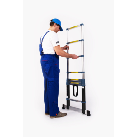 La nueva alternativa a las escaleras convencionales, la escalera telescópica tiene muchas aplicaciones tanto para uso amateur como profesional., Diseño único, la escalera abre y cierra "paso a paso", hasta la altura máxima, por lo que solo se abre hasta la altura necesaria, lo que permite una gran maniobrabilidad, especialmente en espacios reducidos. Plegada, la escalera es extremadamente compacta y fácil de transportar.