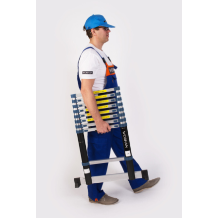 Escalera telescópica simple WORHAN *** Línea C: escaleras telescópicas simples de calidad que cumplen con todos los requisitos de seguridad y son las más adecuadas para uso amateur. *** Línea B: escaleras telescópicas simples que cumplen con todos los requisitos de seguridad., Tiene estabilizadores adicionales que proporcionan una estabilidad mucho mayor durante el uso., *** Línea A: las escaleras telescópicas de la más alta calidad que fabricamos., En la fase de producción, se ha hecho hincapié en la mejora de la seguridad, la durabilidad y la máxima estabilidad, especialmente cuando se trabaja en altura., Lo recomendamos para uso diario a profesionales y aficionados., Dispositivos de seguridad integrados y barra estabilizadora.