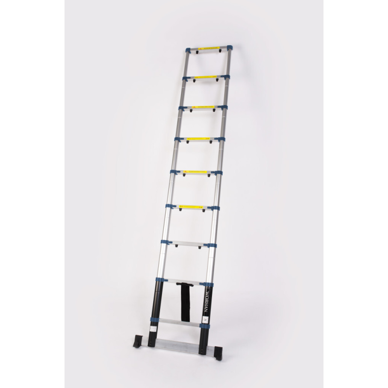 La nueva alternativa a las escaleras convencionales, la escalera telescópica tiene muchas aplicaciones tanto para uso amateur como profesional., Diseño único, la escalera abre y cierra "paso a paso", hasta la altura máxima, por lo que solo se abre hasta la altura necesaria, lo que permite una gran maniobrabilidad, especialmente en espacios reducidos. Plegada, la escalera es extremadamente compacta y fácil de transportar.