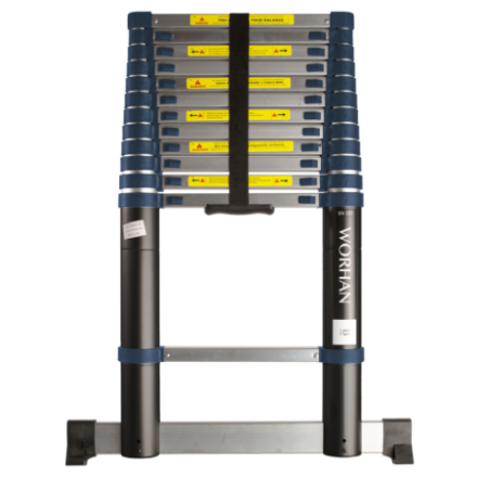 Escalera telescópica simple WORHAN *** Línea C: escaleras telescópicas simples de calidad que cumplen con todos los requisitos de seguridad y son las más adecuadas para uso amateur. *** Línea B: escaleras telescópicas simples que cumplen con todos los requisitos de seguridad., Tiene estabilizadores adicionales que proporcionan una estabilidad mucho mayor durante el uso., *** Línea A: las escaleras telescópicas de la más alta calidad que fabricamos., En la fase de producción, se ha hecho hincapié en la mejora de la seguridad, la durabilidad y la máxima estabilidad, especialmente cuando se trabaja en altura., Lo recomendamos para uso diario a profesionales y aficionados., Dispositivos de seguridad integrados y barra estabilizadora.