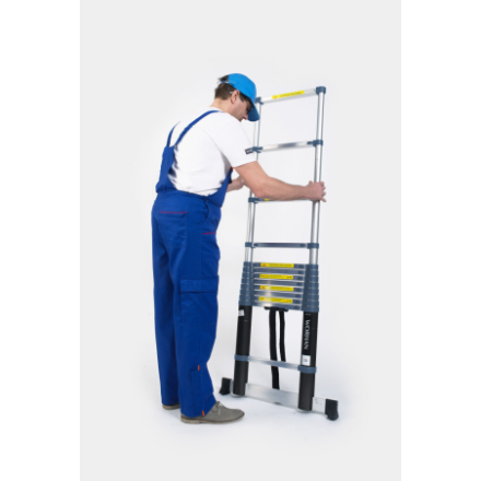 La nueva alternativa a las escaleras convencionales, la escalera telescópica tiene muchas aplicaciones tanto para uso amateur como profesional., Diseño único, la escalera abre y cierra "paso a paso", hasta la altura máxima, por lo que solo se abre hasta la altura necesaria, lo que permite una gran maniobrabilidad, especialmente en espacios reducidos. Plegada, la escalera es extremadamente compacta y fácil de transportar.