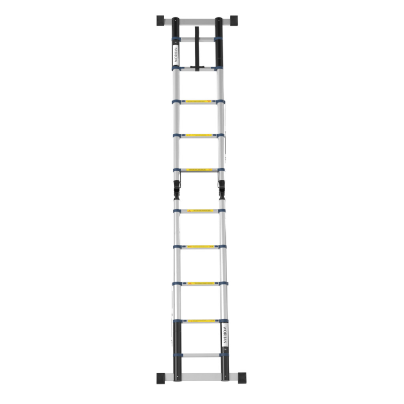 Escalera telescópica doble 3.2mC línea – escalera telescópica doble construida de buena calidad de construcción que cumple con todos los requisitos de seguridad y es más adecuado para el uso amateur.B línea – escalera telescópica doble construida de buena calidad de construcción que cumple con todos los requisitos de seguridad. Escalera tiene dos estabilizadores que proporcionan una estabilidad mejorada cuando la escalera está totalmente extendida o de posición „A”.A línea – escalera telescópica doble construida de mejor calidad de construcción que ofrecemos. Las prioridades en el proceso de producciones principales son la seguridad, durabilidad y estabilidad mejorada, especialmente cuando se trabaja a la máxima altura. Recomendamos esta escalera para el uso a los profesionales y los individualistas.Esta es una escalera multifuncional de nueva generación sin análogos en el mercado.Por su novedosa tecnología no solo se caracteriza por cualidades perfectas para el transporte y almacenamiento, pero además puede reemplazar más de una variedad de escaleras corrientes. Este producto será siempre útil tanto en el sector privado, como en el comercial.Esta escalera de aluminio se fabrica con las más novedosas tecnologías y aluminio de la más alta calidad, lo cual ayuda a garantizar una larga vida útil y estabilidad en el ambiente laboral..Principales Ventajas:*Carga de trabajo segura - 150 kg*Cumple con el estándar Europeo de seguridad EN131*Con la opción de cambiar rápidamente la longitud de la escalera, plegarla por la mitad y acortarla, lo cual permite usarla incluso en superficies desiguales.Especialmente cómodas para usar apoyadas en escaleras*Los pies de goma de la escalera garantizan la seguridad de las superficies sobre las cuales se trabaja y una buena adhesión entre la escalera y la superficie.*El estabilizador ofrece mayor seguridad y estabilidad. Sistema confiable de fijación de altura.