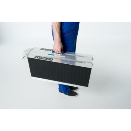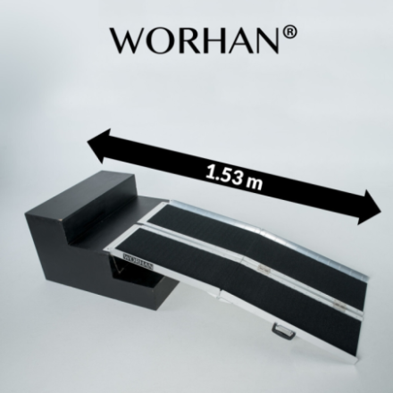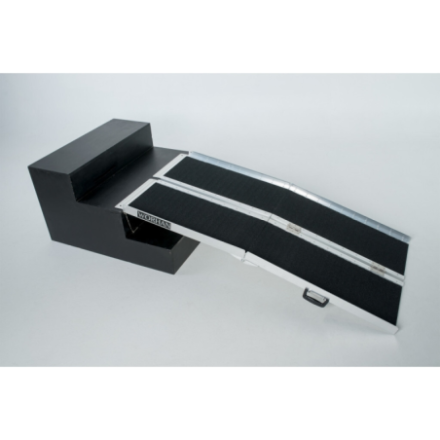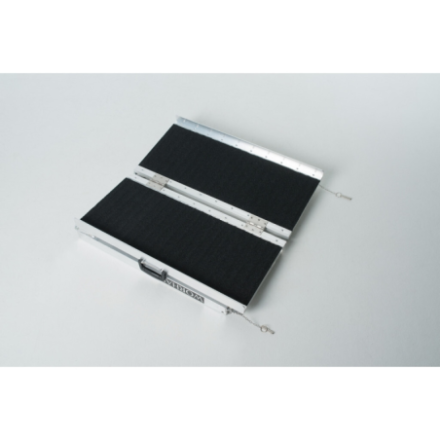 Función antideslizante aumentada., Esta rampa se pliega muy fácilmente (dos veces: en largo y ancho)., Superficie resistente y EXTRA antideslizante incluso con tiempo húmedo o lluvioso., Producto duradero en el tiempo., Material: aluminio anodizado de alta calidad., Diseño optimizado, sólido y único., Muy práctico para manipulación o transporte y almacenamiento.