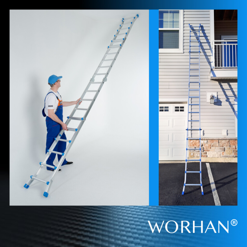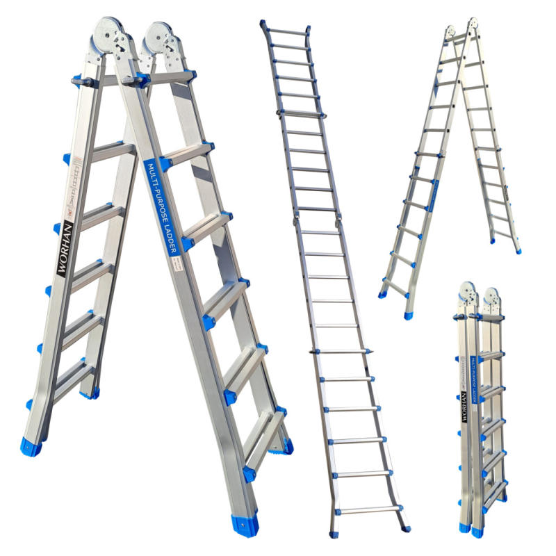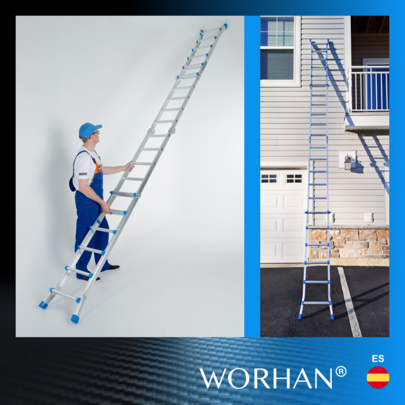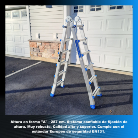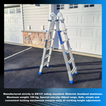 Fabricado estrictamente a las normas de seguridad Europeo EN131., Carga de trabajo segura - 150 kg., Diseño extensible y plegable para un uso versátil., El mecanismo de bloqueo seguro, simple y conveniente garantiza la facilidad de ajuste de la altura de trabajo.
