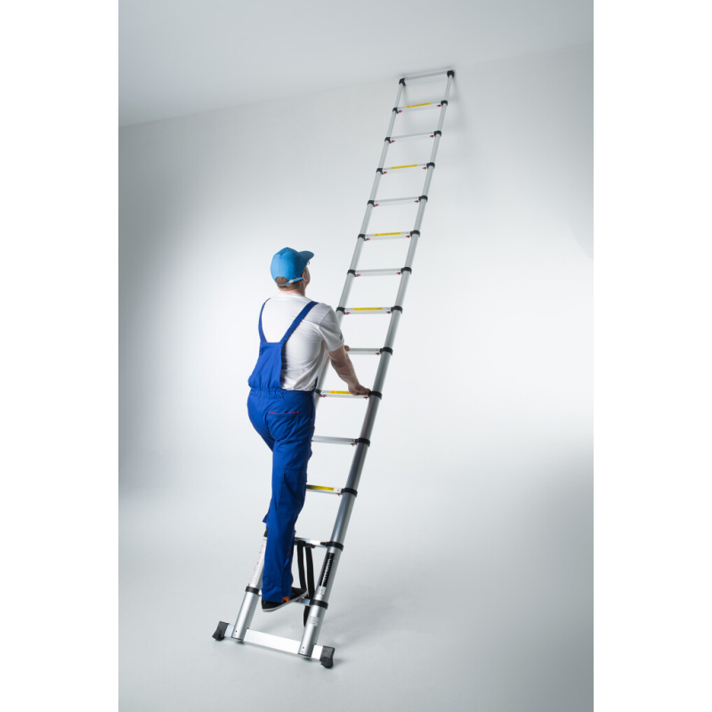 Fabricado estrictamente a las normas de seguridad Europeo EN131., Carga de trabajo segura - 150 kg. Peldaños acanalados especiales antideslizantes. Escaleras muy duraderas que han sido fabricadas en aluminio de alta calidad.