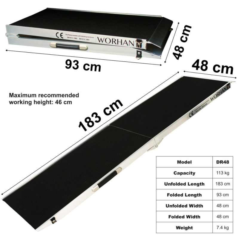 Altura de trabajo máxima recomendada - 46 cm. Este producto está hecho de aluminio de alta calidad. Capacidad máxima: 113kg