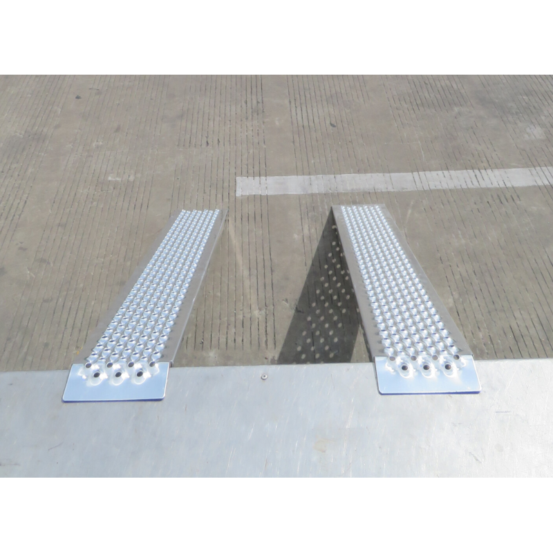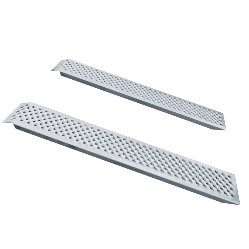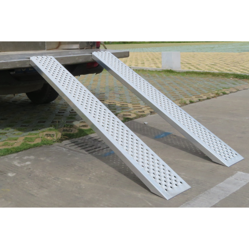 Las rampas se pueden utilizar para cargar tractores o cortadoras de césped, quads, remolques, bicicletas eléctricas, motocicletas, etc. Bordes laterales biselados para garantizar un mayor contacto en el punto de apoyo superior.