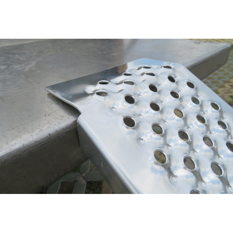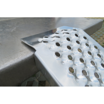 El producto está fabricado en aluminio de alta calidad según las normas EN y CE. Al estar fabricados en aluminio, son extremadamente ligeros (3,5 kg cada uno), muy robustos y no se oxidan. Superficie: perforada - antideslizante, para un excelente agarre