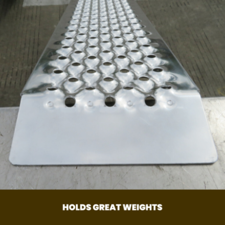 El producto está fabricado en aluminio de alta calidad según las normas EN y CE. Al estar fabricados en aluminio, son extremadamente ligeros (5 kg cada uno), muy robustos y no se oxidan. Superficie: perforada - antideslizante, para un excelente agarre.