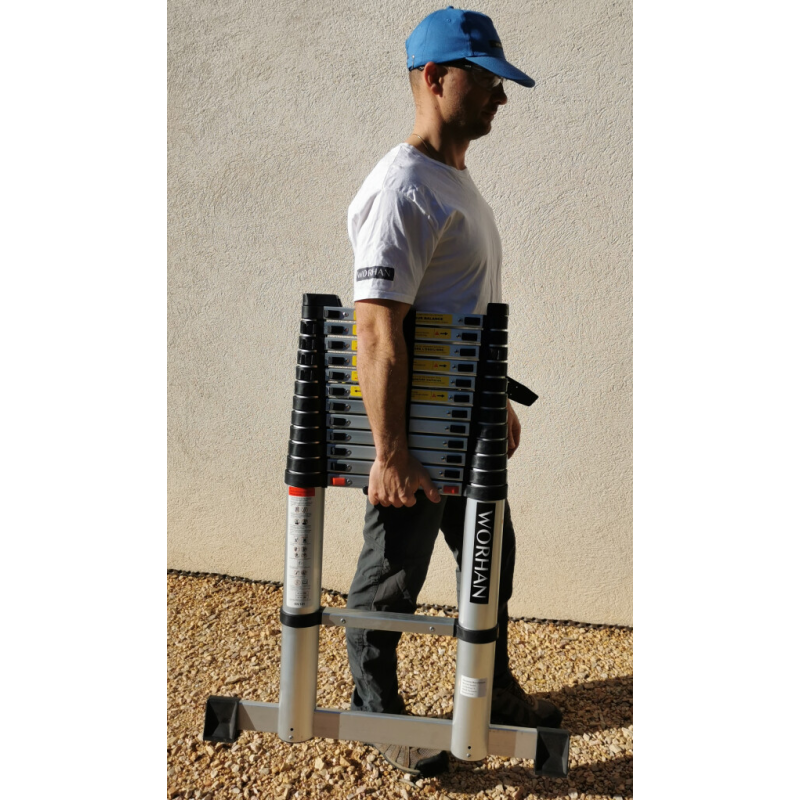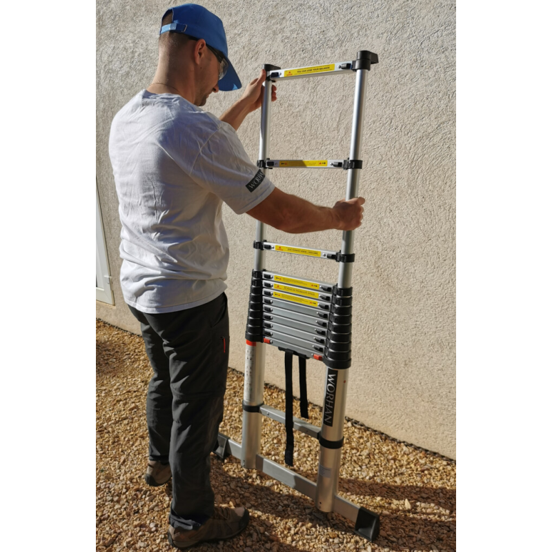 Max loading: 150kg Soft Close/ Finger protection : Yes Certification: TUV certified to EN131-6 Max product height: 3.8m Min product height : 87cm No. of steps: 13 Product dimensions (folded) : 87cm x 48cm x 9cm Packing dimensions : 90cm x 51cm x 10cm Product weight : 12kg Stabilizer bar: YES