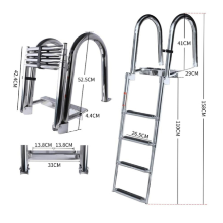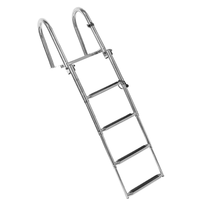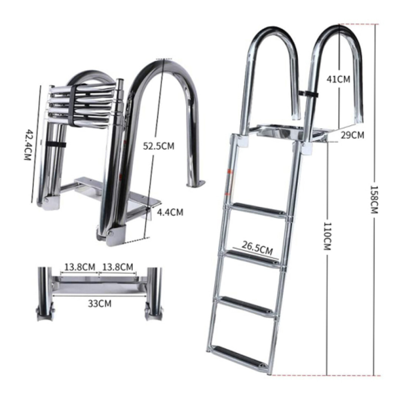 Pasamanos ergonómicos para subir y bajar fácilmente. Peldaños telescópicos extra anchos. La superficie del peldaño está hecha de goma antideslizante para máxima seguridad y comodidad.