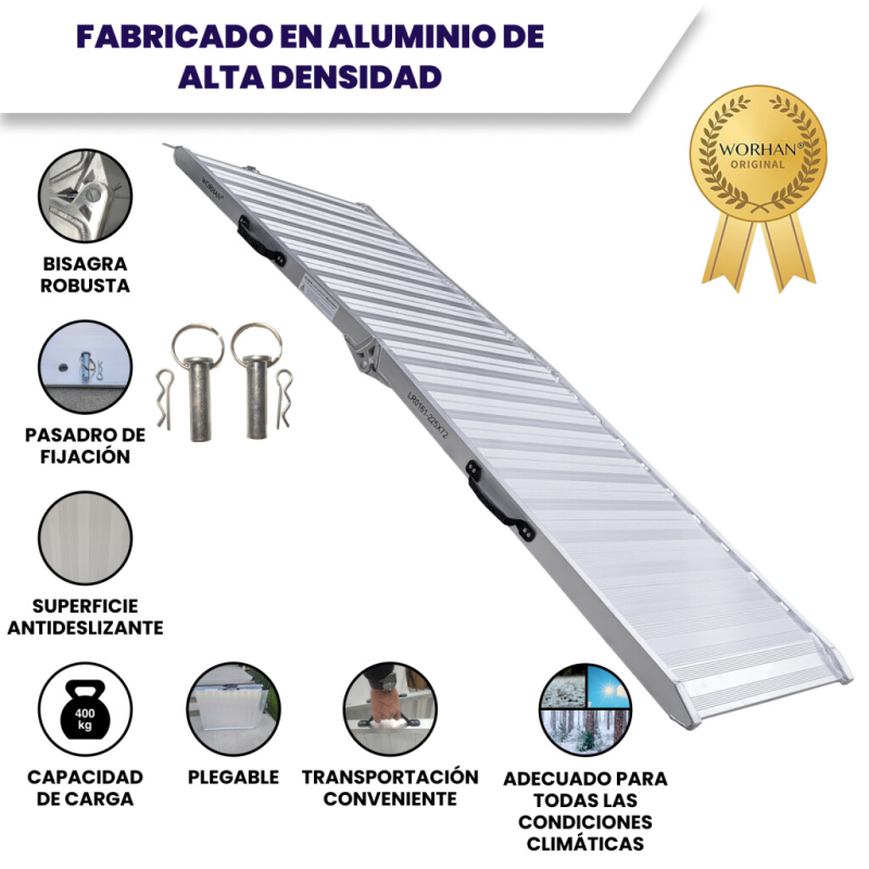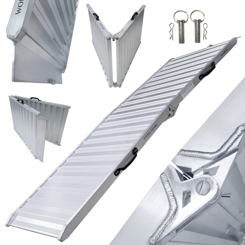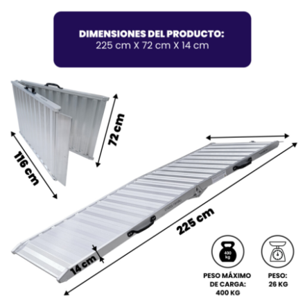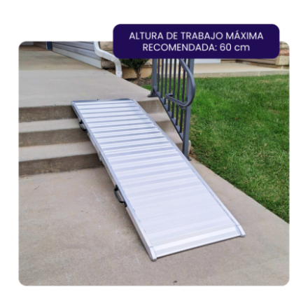 Aluminio anodizado de alta resistencia así como la superficie ultra antideslizante. La rampa está equipada con unas cómodas y resistentes asas de transporte.,