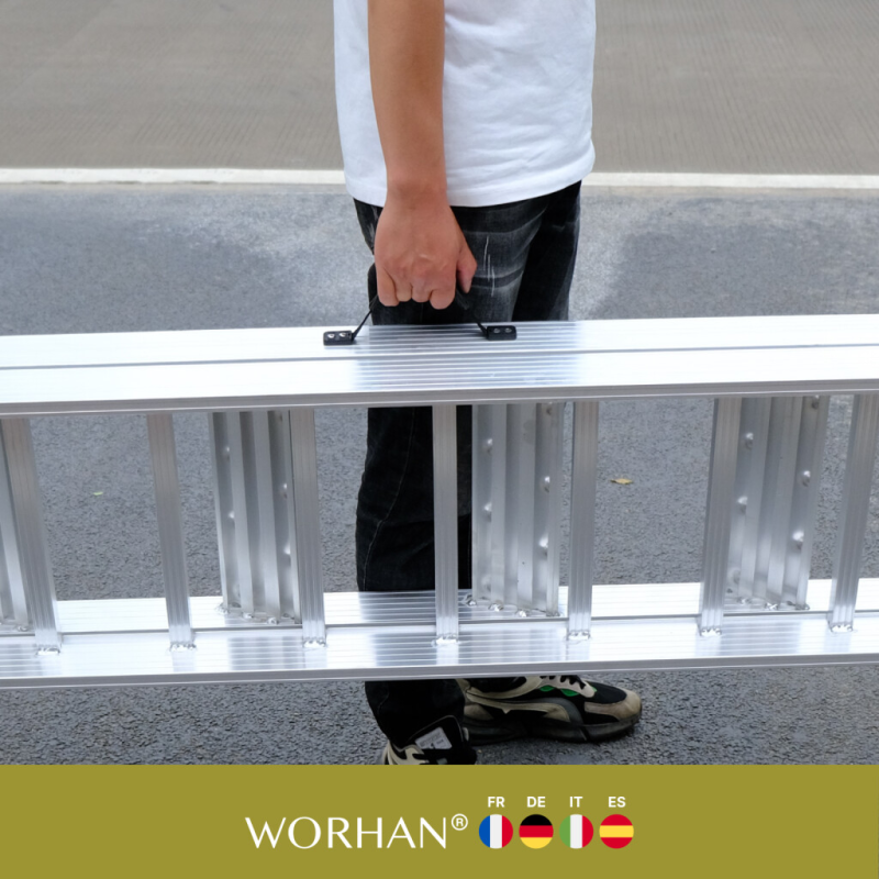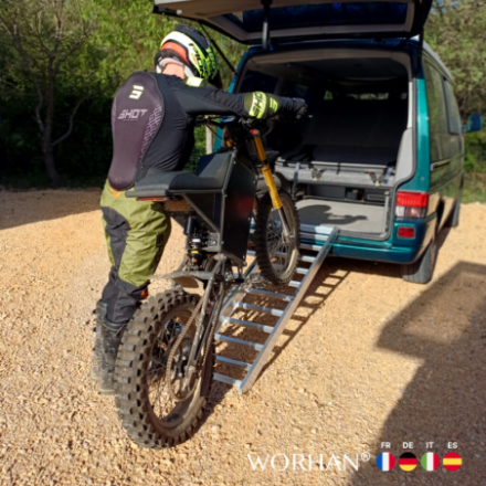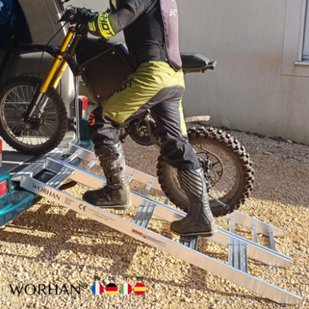 Un producto muy exclusivo y de alta calidad, que permite caminar al lado de su motocicleta cuando la está cargando o descargando. Este producto fue desarrollado para garantizar la seguridad de la persona y eliminar los posibles daños a una motocicleta durante la fase de carga/descarga. La rampa es plegable en longitud y está equipada con un cómodo asa de transporte para facilitar el transporte. Las dimensiones del producto plegado son: 180cm x 38cm x 16cm Peso: 11.5kg Carga máxima: 500kg